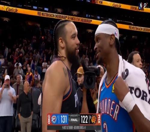 狄龍成為太陽最堅(jiān)毅的球員,他連續(xù)三場比賽拿到20+,其中還有兩場30+,他在某些時(shí)刻甚至跟MVP亞歷山大有些一時(shí)瑜亮,賽后兩位加拿大男籃的隊(duì)友也是擁抱熱聊,狄龍并沒有太傷心。