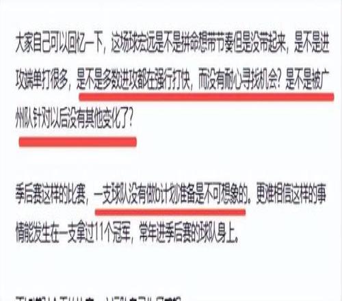 媒體人別跑剛背豬批評杜鋒打法簡單,他說,“大家自己可以回憶一下,這場球宏遠是不是拼命想帶節奏但是沒帶起來,是不是進攻端單打很多,是不是多數進攻都在強行打快,而沒有耐心尋找機會?是不是被廣州隊針對以后沒有其他變化了?季后賽這樣的比賽,一支球隊沒有做b計劃準備是不可想象的。更難相信這樣的事情能發生在一支拿過11個冠軍,常年進季后賽的球隊身上”。別跑剛背豬直言杜鋒一味打快,沒有b計劃準備。
